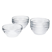 - Stackable glass bowls for easy storage