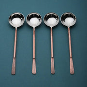 Our Celia Sugar Spoon 4 Pc. Set brings a distinctive expression to the espresso bar. Showcasing rounded mirror-polished spoons with a deep bowl and textured handles in an antique copper finish, these sugar spoons make a wonderful addition to your silverware and a thoughtful gift set for a favorite coffee connoisseur.