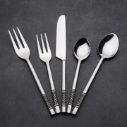Look to our Chantilly Flatware 5-Pc. Place Setting for a table your family and guests will appreciate. Polished to a luxe satin shine, this fine silverware design features a lovely black French “lace” design on the handles. Chantilly balances traditional design with a touch of modern elegance to match your hosting style.