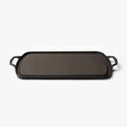 The Long Cast Iron Griddle is our vintage-style double-burner griddle. A precisely-machined 9 x 16 ½-inch cooking surface covers two stovetop burners, making room for large batches of pancakes, french toast, bacon or burgers, and creating an extended searing surface for ambitious holiday roasts.