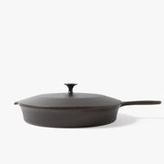The 13 ⅜" No.12 Cast Iron lid matches the No.12 Field Skillet exactly. Made from 100% cast iron, Field lids are seasoned with grapeseed oil—not synthetic coatings— and safe for high-heat cooking on the stovetop or in the oven. Use this lid with your No.12 for extra-large slow-and-steady braises, or quick tasks like wilting hardy greens, melting cheese for sandwiches and burgers, or finishing off sunny-side up eggs.
