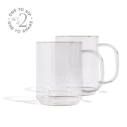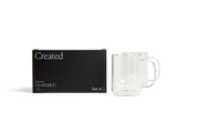 Discover new clarity with Cove. Some things never go out of style—like the cool feel of glass, the balanced weight of a perfectly designed vessel, and the simple pleasure of a well-poured drink. Cove is our take on timeless glassware, reimagined for the modern home. The Cove 12 oz Glass Mug is currently available in a set of two. The set is stackable.