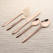A study in luxury, the Estique PVD Flatware Set captures the essence of modern design with its sleek arrow-like silhouette. The design features a sharp center fold and faceted sides, with a statement-making point at the base. Crafted from high-grade stainless steel and finished in a rich PVD color coating, this unique flatware set will add style to any dinner set. Create unforgettable dining experiences with the Estique PVD flatware collection.