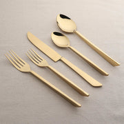 The Fairfax PVD flatware set is both chic and cosmopolitan, elevating weekday dining to a new level. The slim square handles create a striking sculptural profile that tapers towards the back. A contrasting knife features a wider handle that complements the rounded, angular base, providing a comfortable and balanced grip. The rich, radiant, and durable PVD color coating enhances the contours of the Fairfax collection making this artisan flatware ideal for both everyday use and entertaining.