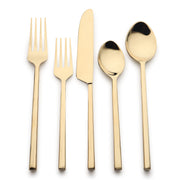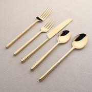 - 5-piece flatware set includes 1 salad fork, 1 dinner fork, 1 dinner knife, 1 soup spoon, and 1 teaspoon