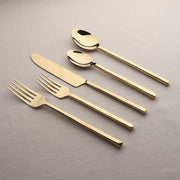 The Jason PVD Flatware was designed to bring bold and timeless elements to your dining table. This artisan flatware design features streamlined square handles with a solid feel for comfortable dining. Crafted from stainless steel with a luxe PVD coating, the brilliant metallic finish adds a sense of glamour to the occasion.