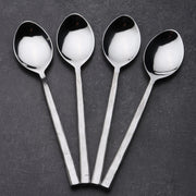 Bring a sleek industrial look to your dessert table with our Jason Table/Dessert Spoon Set. Raw nascent steel handles lend an organic look to each spoon and mirror-polished utensils guarantee a chic, contemporary table setting.