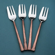 Invite simplicity and sophistication to the table with our Sundance Pastry Forks 4 Pc. Set. Showcasing mirror-polished forks and antique copper handles, this set adds a touch of rustic flair to everyday dining or special occasions.