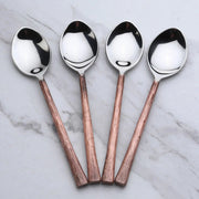 Bring relaxed elegance to your dessert table with our Sundance Copper Antique Dessert/Table Spoon 4 Pc. Set. Faceted copper handles lend an antique quality to your table while mirror-polished spoons guarantee a chic, up-to-date look for everyday or special occasions.