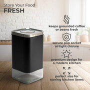 - MULTI-PURPOSE. The storage container is suitable for keeping coffee beans and grinds, spices, pasta, sugar, and other foods fresh and dry for weeks.