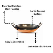 From the cooktop to the tabletop, our solid Copper Paella Pan combines the unsurpassed quality of traditional craft with the beauty of modern design. It is the perfect copper cookware to add flavor and flair to more than just paella: omelettes, crepes, vegetables, bacon, anything really.