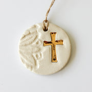 Get your hands on one of these adorable Gold Leaf Cross Ornaments, complete with imprinted cross and lace and hand painted gold leaf. Perfect to hang on the tree, tie to a gift, or hang in your window. These precious, handmade ornaments are are sure to make you and your loved ones smile!