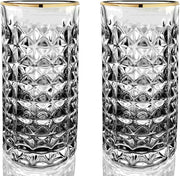 - HIGHLY DURABLE & VERSATILE: Due to heavy weight of these highball drinking glasses, they are incredibly durable and meant to stand the test of time. Although they make a beautiful cocktail glass, they are also perfect for all occasions. if you're drinking Iced tea or coffee, juice, water, or soda reach for these gold rimmed tumbler glasses.