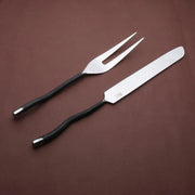 Our Tedpole Meat Carving 2 Pc. Set brings an artistic touch to your table. Featuring contoured blackened handles with gleaming stainless steel ends, this stainless steel carving knife and fork set is perfect for carving and serving large roasts, turkey, and ham.